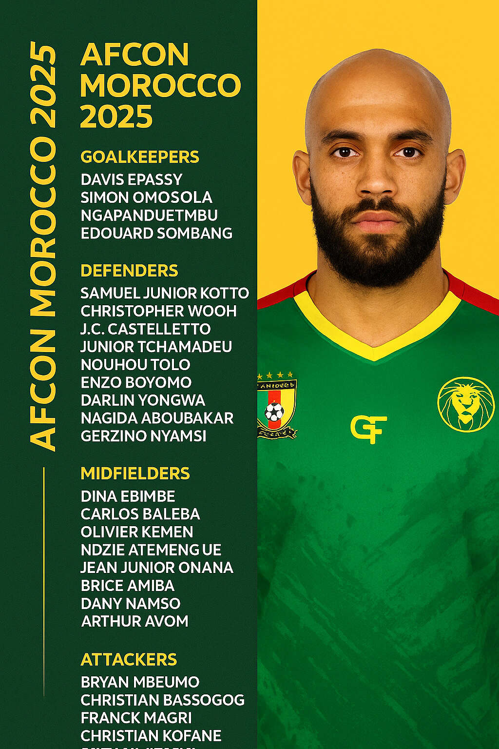 The group of Cameroonian players selected to represent their nation in the 2025 Africa Cup of Nations tournament.
