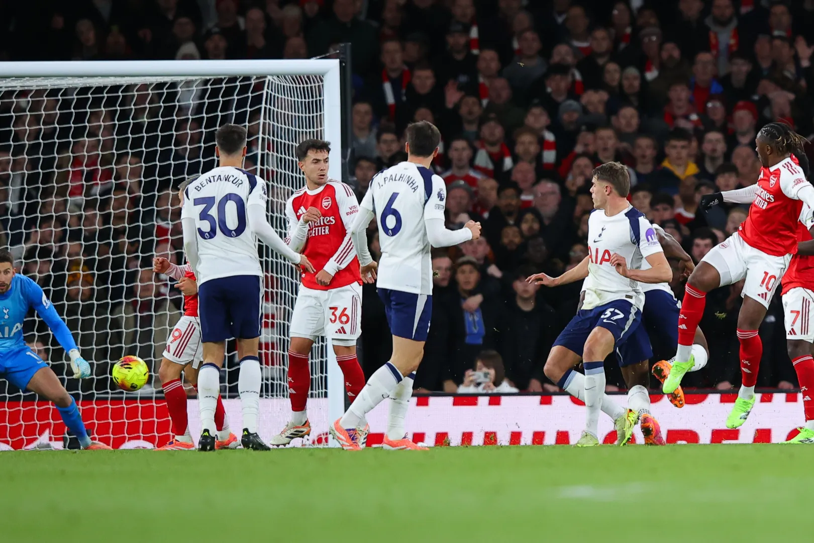 Almost immediately after the game resumed, Eze struck again, expertly placing his shot into the corner following a series of weak defensive plays by Tottenham that allowed Arsenal to advance unimpeded.
