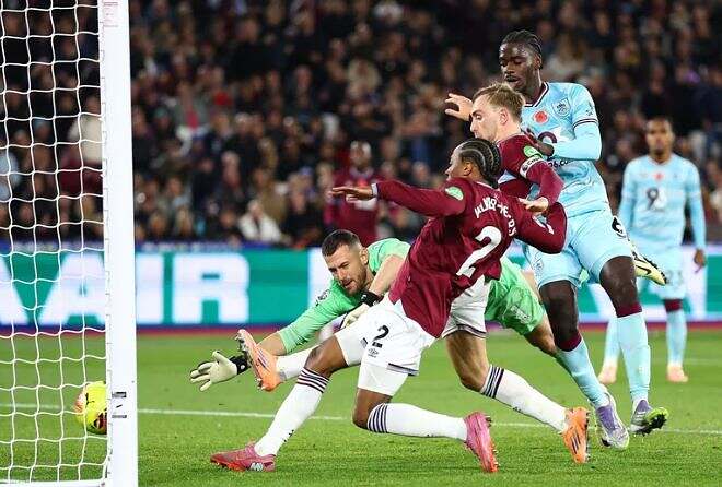 Axel Tuanzebe and the Burnley goalkeeper attempted to clear, but West Ham’s revitalised energy and fresh hunger caused a narrow line to develop in order to drive the ball over the line.